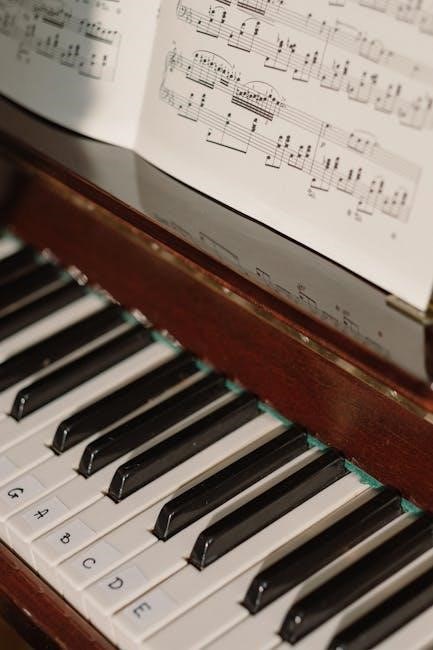 Interval practice within the scale is also common, strengthening ear training and keyboard awareness. Consistent practice with these PDF exercises, even for short durations daily, yields significant improvements. Remember to prioritize accuracy and evenness of tone before focusing on speed.
